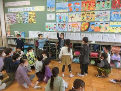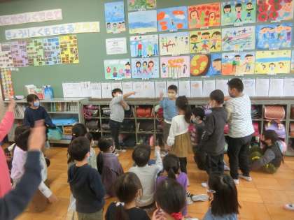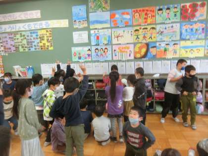 雨の日あそび係が,じゃんけん大会を企画してくれました。じゃんけんチャンピオンが決まると,大盛り上がりでした。