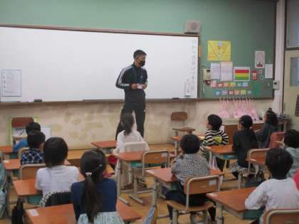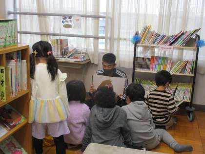 など質問があり,答えてもらいました。図書の時間には,紙芝居を読んでもらって夢中になっていました。