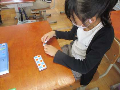 今日から「ひきざん(2)」の学習です。今日は,ブロックを使って10のまとまりから引くことを学びました。