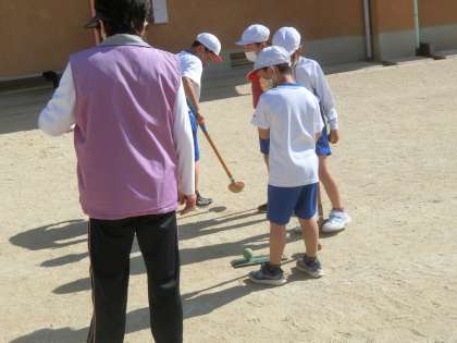 何度も挑戦するうちに,どんどん上達していることが自分でも感じたようで,楽しそうに活動する姿がみられました。時には,ホールインワンを獲得する子もおり,盛り上がりました。
