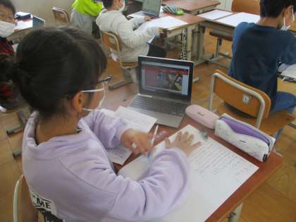 自分が調べた食品の変わり方をまとめている様子です。