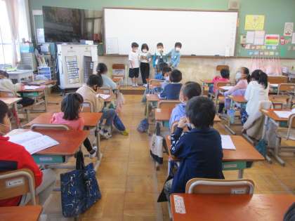 今日はなぞなぞの日です。なぞなぞ係が楽しいなぞなぞを出してくれました。一番難しかったのは,「ダイはダイでも,おかあさんが喜ぶダイは?」というなぞなぞでした。「大根」「台所」などの答えが出てきましたがどれも正解ではありませんでした。みんなで悩むのも楽しい時間です。