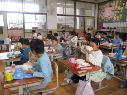 今日の給食は,関東煮とごまず煮でした。関東煮の大根は,京都産だそうで,味わっていただきました。