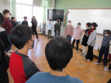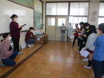 劇団の方が3回目の劇指導をしてくださいました。立ち位置を確認したり,せりふの言い方を教えてもらったりしました。あとは本番まで自分たちで工夫を重ねていきます。すでに衣装の準備では,お家の方に協力してもらいありがとうございます。あと2週間と少しで本番です!