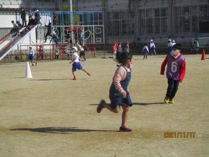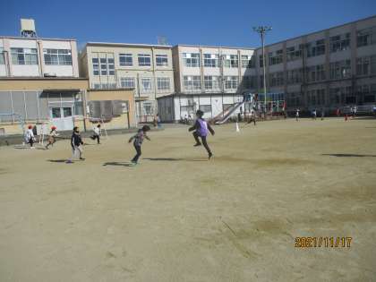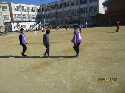休み時間に企画した遊びで下の学年と遊んでいます。