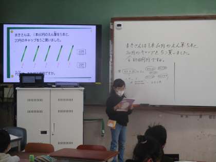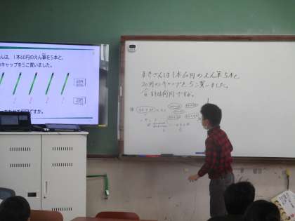 別々に考えたり,まとめて考えたり解く方法を確認しました。