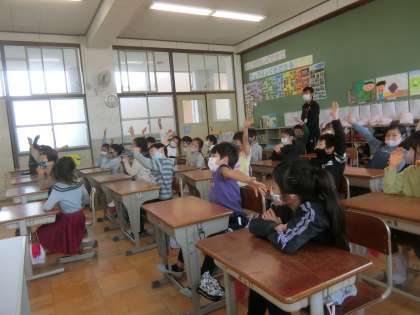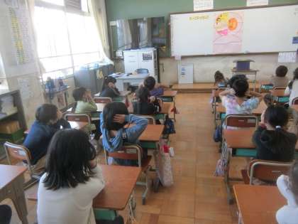 今回の食育指導では,「おいしさみつけをしよう」という学習をしました。五感を使って食事をすることの大切さを学びました。これまで音を感じながら食事をしていなかったと気付いたようで,そのあとの給食の時には,耳に手をあて噛む音を感じました。