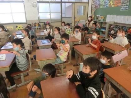 今練習している「ともだちになるために」の曲に合わせて手話の練習をしました。曲の意味を考え,手話を合わせたことで,これまで以上に心のこもった歌唱になりました。