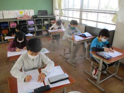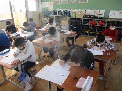 プリントで単元の復習をしている様子です。