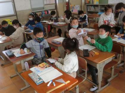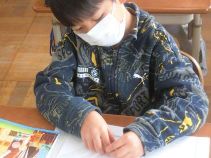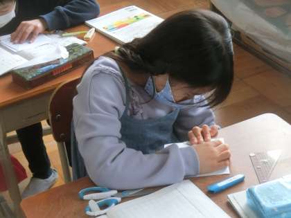 長方形の紙を切り,正方形を作りました。正方形はすべての辺の長さが同じで,かどがすべて直角であることを,確かめました。