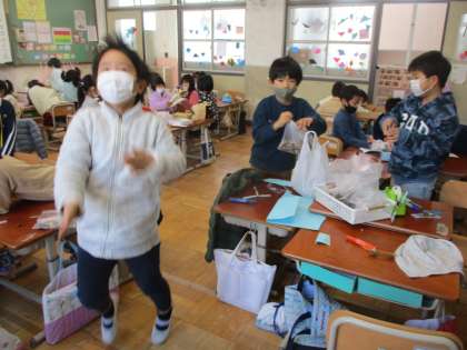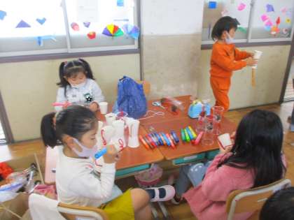 あきがいっぱいの学習でおもちゃを作っています。金曜日にお店を開く予定です。