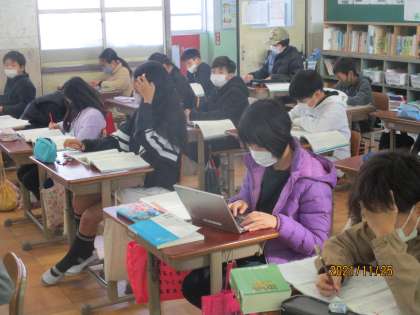 意見文を書くときに,自分の考えの根拠となる資料をさがしている人もいました。非常に良い取り組みだと思います。自分のパソコンがある良さです。
