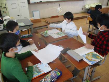 不思議に思ったことや面白く感じたことを班で交流している様子です。