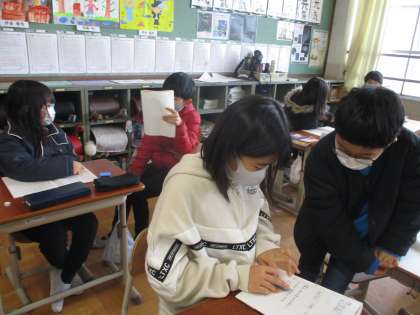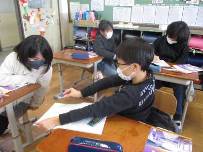 小数のわり算はどのように考えれば答えが出るのか,隣の人と話し合っています。