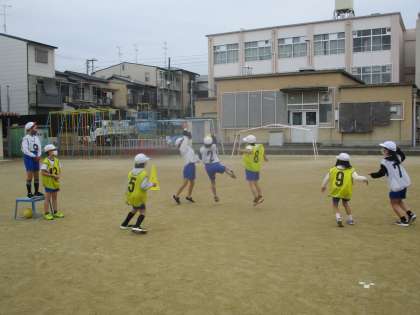 チームで練習したことを意識して試合をしている様子です。