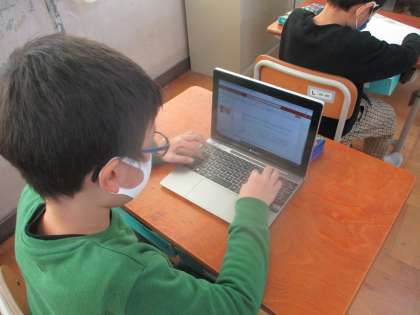 自分が興味をもったことをパワーポイントにまとめている様子です。