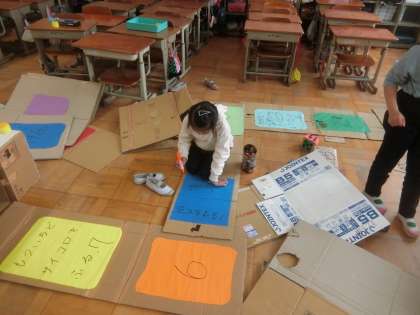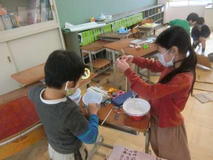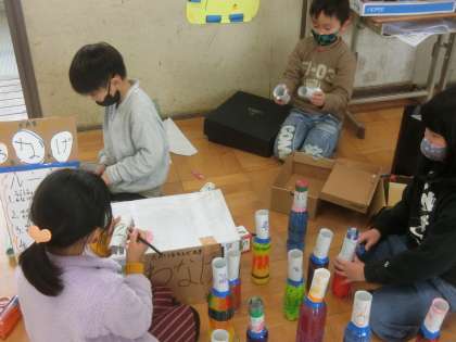 おもちゃ作りも,完成に近づいてきています。壊れやすいところを補強しました。