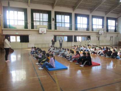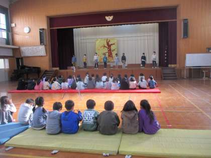 2年生の学習発表会を見せてもらいました。がまくんとかえるくんのお話の音読劇でした。セリフや動きがすごく上手で,お話の世界に引き込まれました。