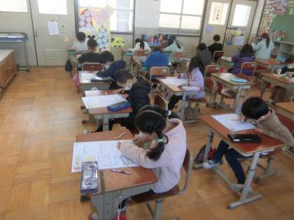 2学期最後の算数テストをしました。ものさしを使って,丁寧に図形をかけるようになりました。