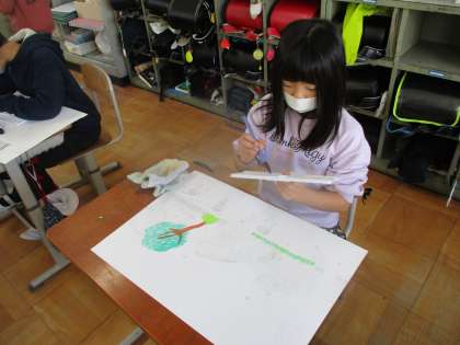 学校でお気に入りの場所を絵にあらわしている様子です。