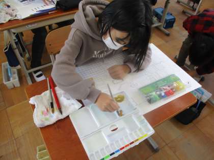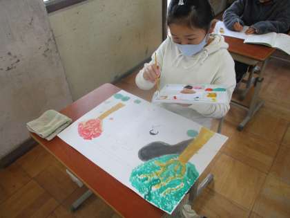 グラウンド,図書室,朱六の森などいろいろな場所の絵ができそうです。