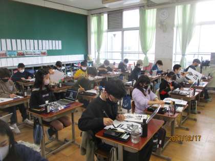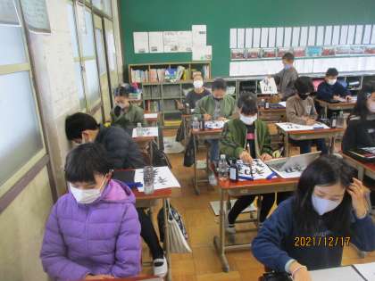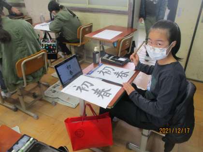 書初めをしました。ポイントなどを気にしながら書いている人が多くて良い作品がたくさんありました。