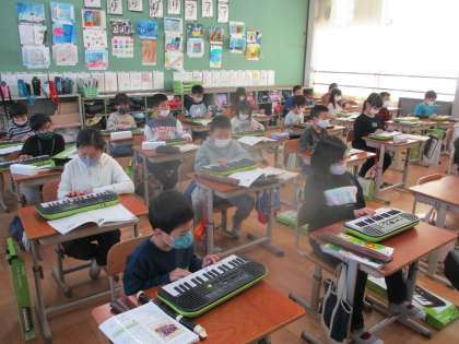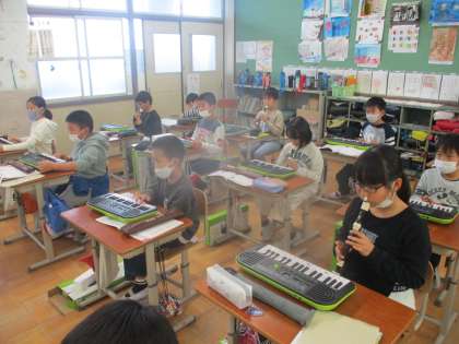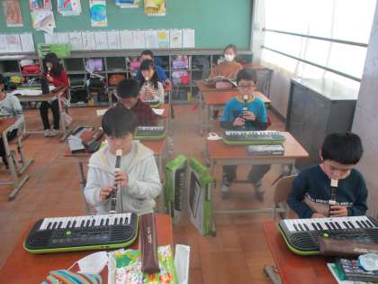 リコーダーとミニキーボードを使って「エーデルワイス」を演奏する練習をしました。