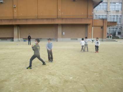 グラウンドでドッチボールをしたり,砂だんごを作ったりして遊びました。