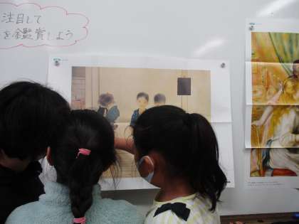 美術作品を見て,何が描かれているかを友達と話し合いました。