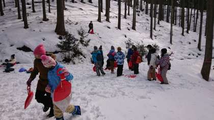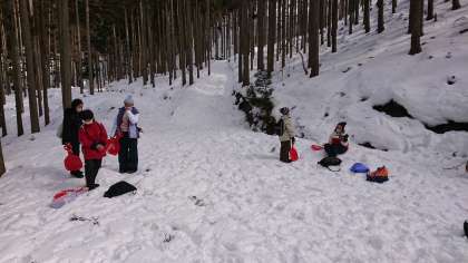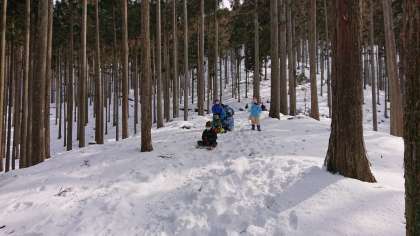 雪山の中に入り込み、滑れそうな斜面をみつけては、ソリを楽しみました。