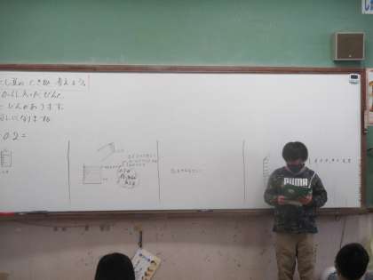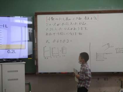 整数の場合を基に,小数のたし算の計算の仕方を考えました。
