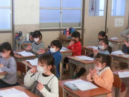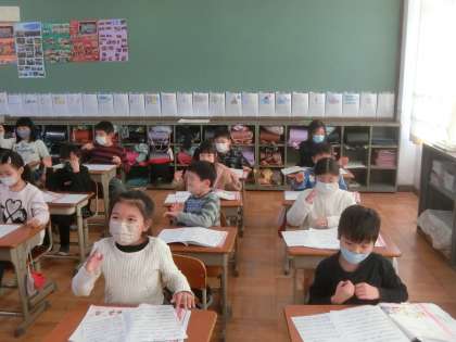 歌に手話を付けて,歌う練習をしています。大きな声で歌えない分,手話で表現しています。