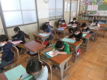 「まどをひらいて」の学習がはじまりました。はじめてカッターナイフを使う子も多くいたように思います。正しい使い方を意識して,まどを開いていきました。