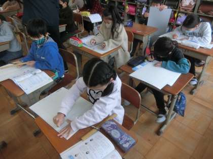 工作用紙を使い,箱を作りました。向かい合う面の大きさが同じでないと,きれいな箱が作れないことを実感したようでした。