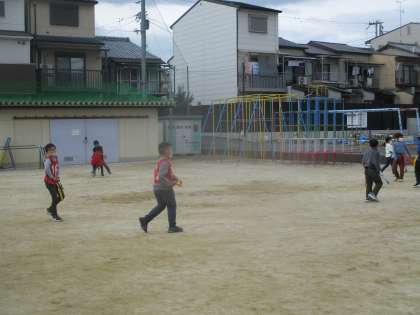 6時間目の最後にグラウンドでしっぽとりをしました。