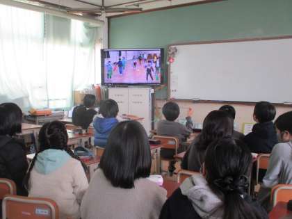 今年の「6年生を送る会」は,ビデオ撮りした学年ごとの出し物を教室で観ました。6年生へのメッセージだけでなく,ダンスや手話,合奏やクイズなど工夫がいっぱいでした。子どもたちも「かわいいな〜。」「上手!!」と嬉しそうにしていました。6年生からは,「サヨナラまたな」という曲に合わせた動画をプレゼントしました。