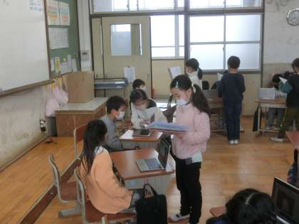 「ひろがれわたし」の学習のまとめとして,アルバムの交流を行いました。赤ちゃんのころの写真を見せながら,交流をしたのでお互い「かわいい,かわいい。」と話していました。