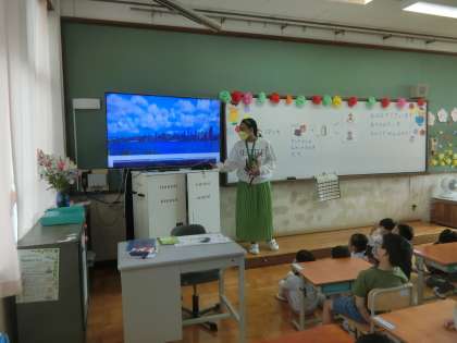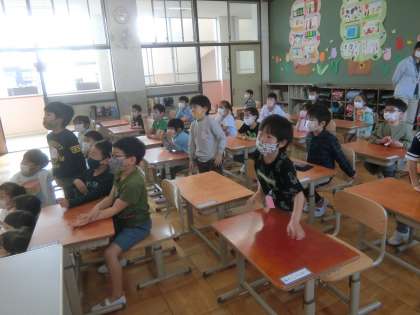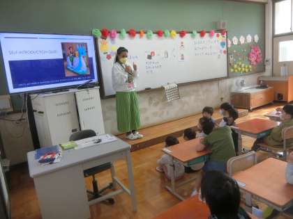 ALTのアマダラ先生の紹介をしました。出身地や家族構成,好きな動物などアマダラ先生のことを知ることができました。また,英語であいさつにも挑戦しました。