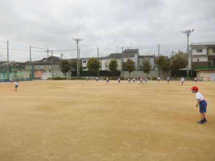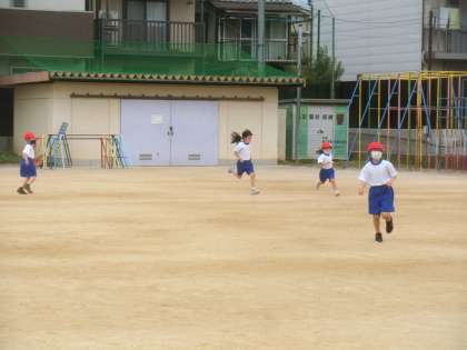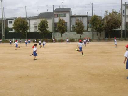 そのあとは,運動場にでて,おにごっこをしました。とても広い運動場に驚いたようすでした。「広すぎて,なかなかつかまらない。」と喜ぶ姿も見られました。