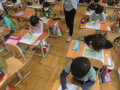 はじめての算数のテストがありました。100点とれるようにと,何度も見直しをする姿が見られました。自信満々で提出しました。