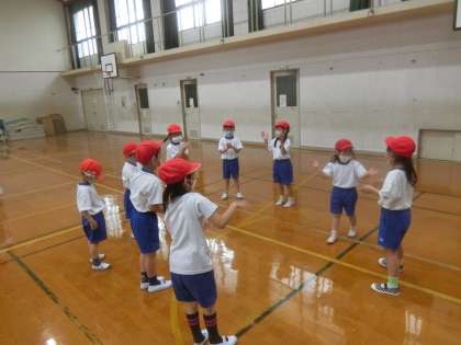 からだほぐしのうんどうに取り組みました。みんなで一斉に跳んだり,仲間集めをしたりしました。最後は,集まった仲間でタタロチカを踊りました。