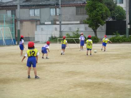 ボールけりあそびをしました。ゴールするためにパスを回していくこつが分かってきたようです。友だちがどこにいるのかを確認しながら蹴る姿が増えました。