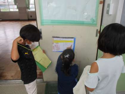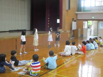 体育館で担任の先生の名前を伝えてゴールです。ちょっぴり悩んでしまって2年生にヒントをもらう姿もありましたが,しっかりとゴールができました。これからもっと仲良しになって,いっしょに勉強したり遊んだりしましょう!