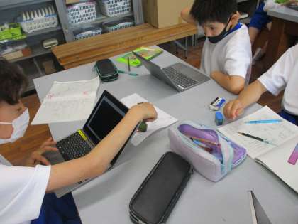今日の実験を通して学習したことをロイロノートを使ってまとめています。