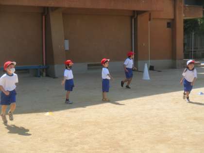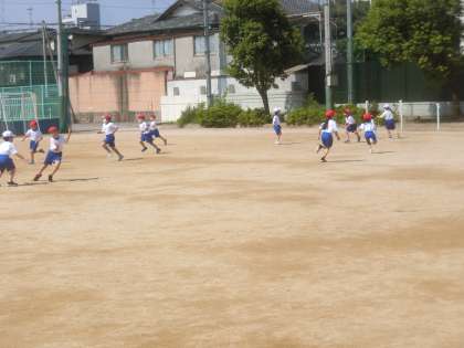 今日の体育では,けいどろをしました。警察チームとどろぼうチームに分かれて追いかけました。