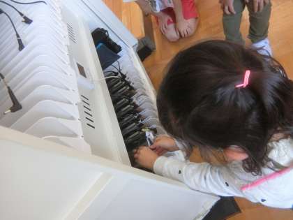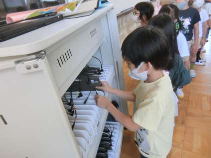 明日から始まるタブレット学習にむけて,準備の方法や片付けの方法を学びました。順番を守り,丁寧に扱うことができました。