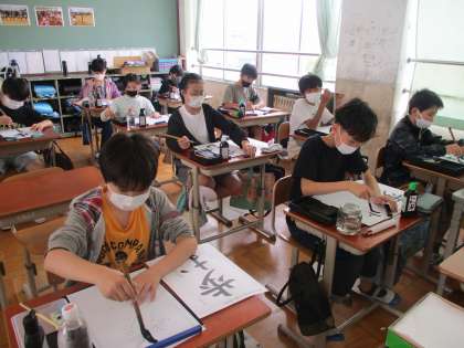 毛筆の学習の様子です。