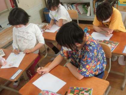 今日からクラブ活動が始まりました。図工クラブでは,1年間の計画をたてた後,早速活動を開始しました。1つ目の作品は下敷き作りになり,思い思いの絵を描きました。