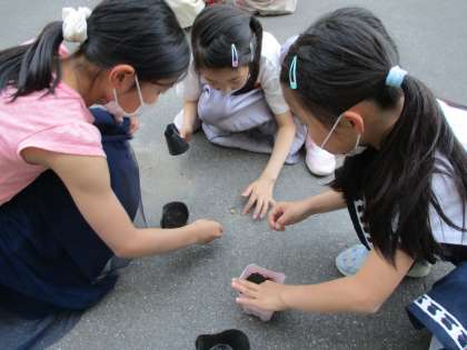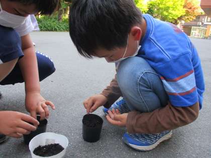 理科の学習で,ホウセンカ・ひまわり・だいず・オクラの種をまきました。