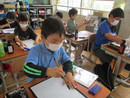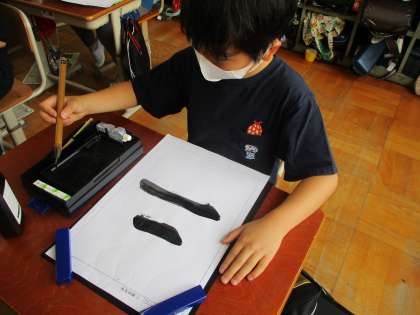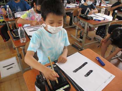 筆の持ち方や姿勢にも気をつけて文字を書きました。
